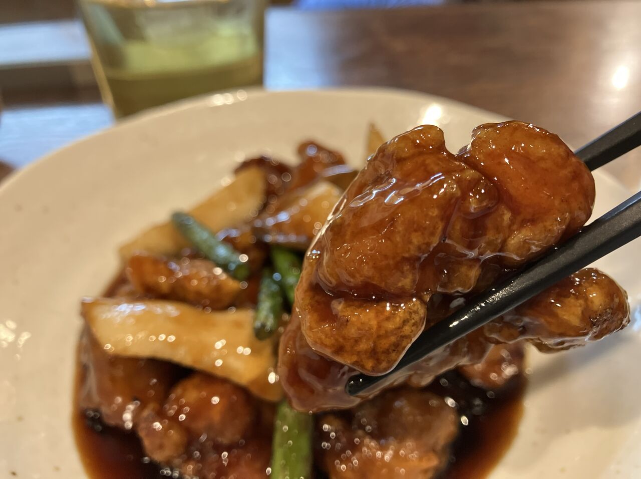 酢豚は黒酢ソースでテカテカ。