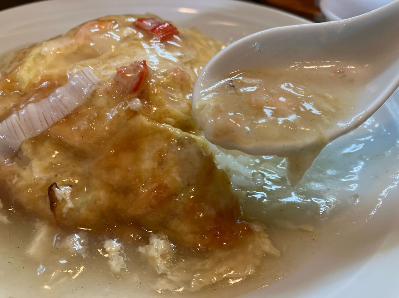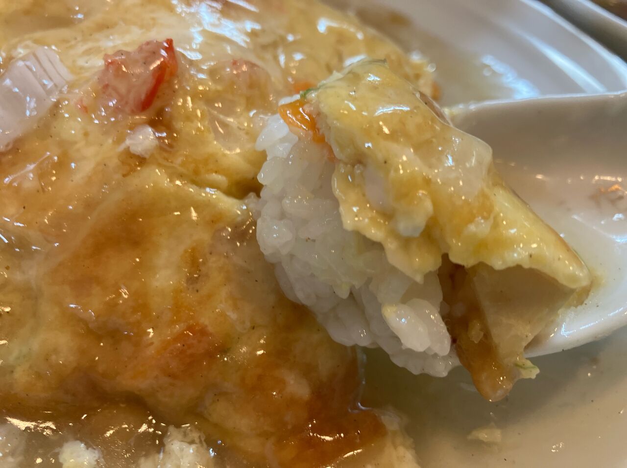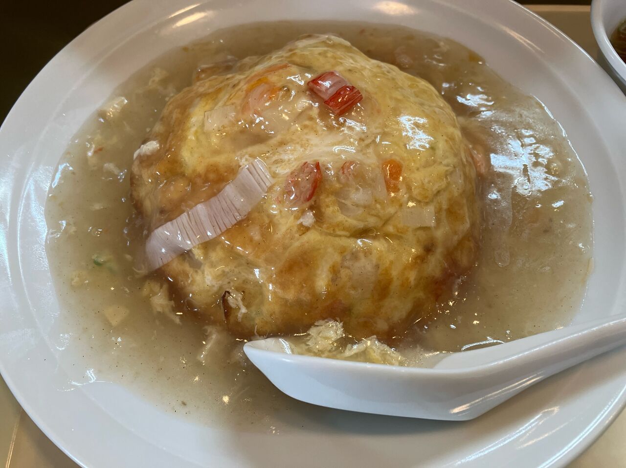 10分ほどでお盆に天津飯、スープが乗って手渡される。