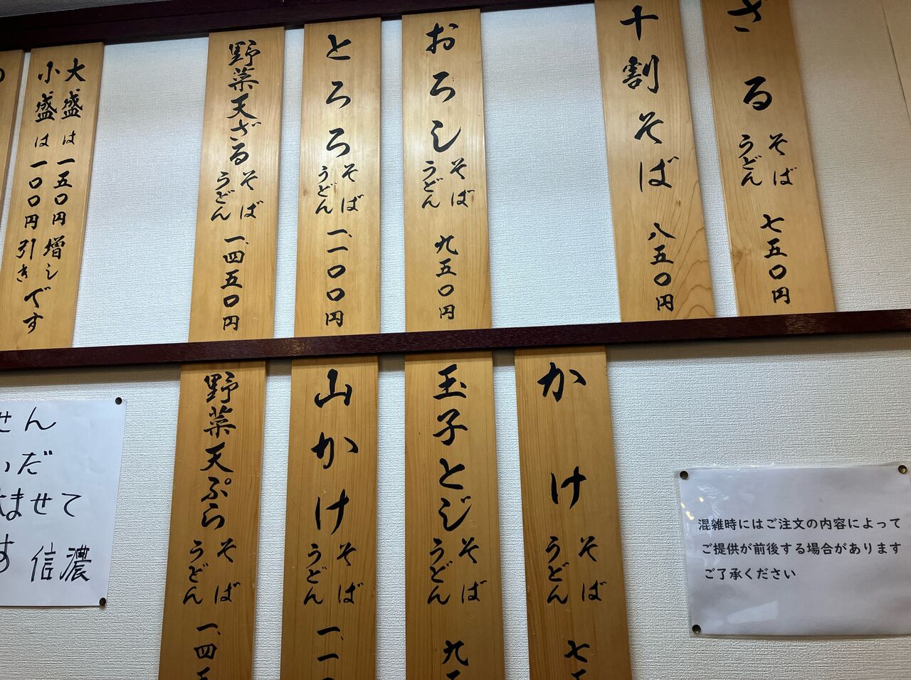 壁にそばのメニューが貼ってある。