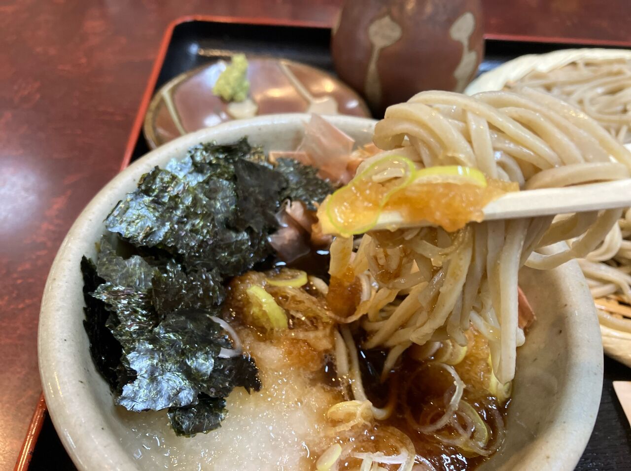 そばにつゆ、大根おろしを絡めていただく。