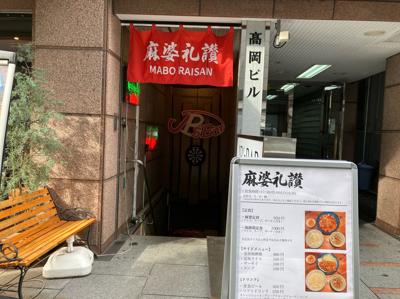 ビルの地下階段への入り口に「麻婆礼賛」という赤い暖簾を発見。