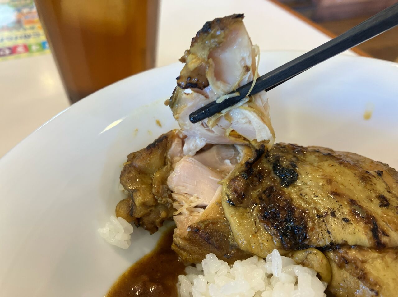 ご飯とカレーがすぐになくなって、チキンだけが残ってしまった。