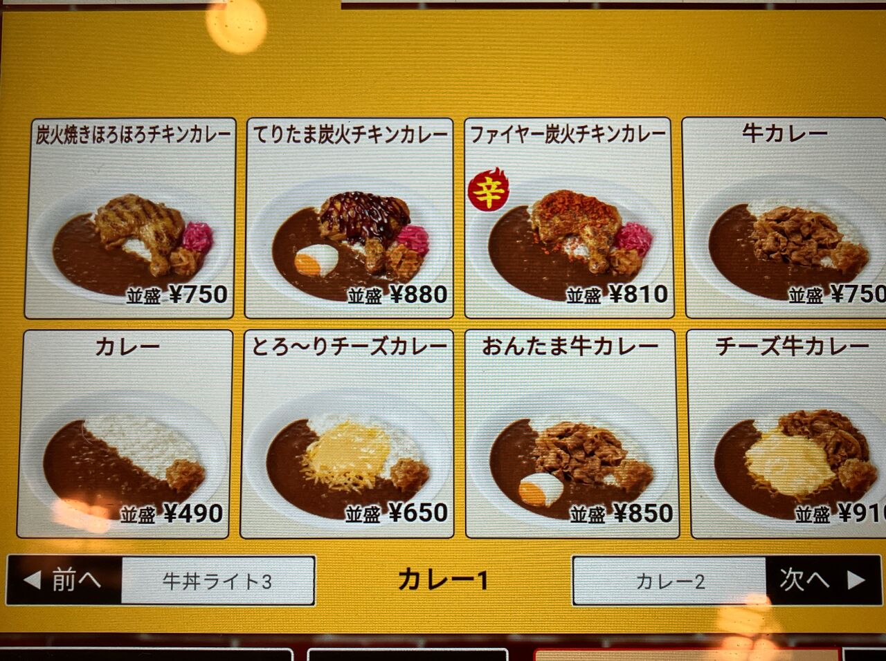 タブレットで「炭火焼きほろほろチキンカレー(ミニ)」をオーダー。