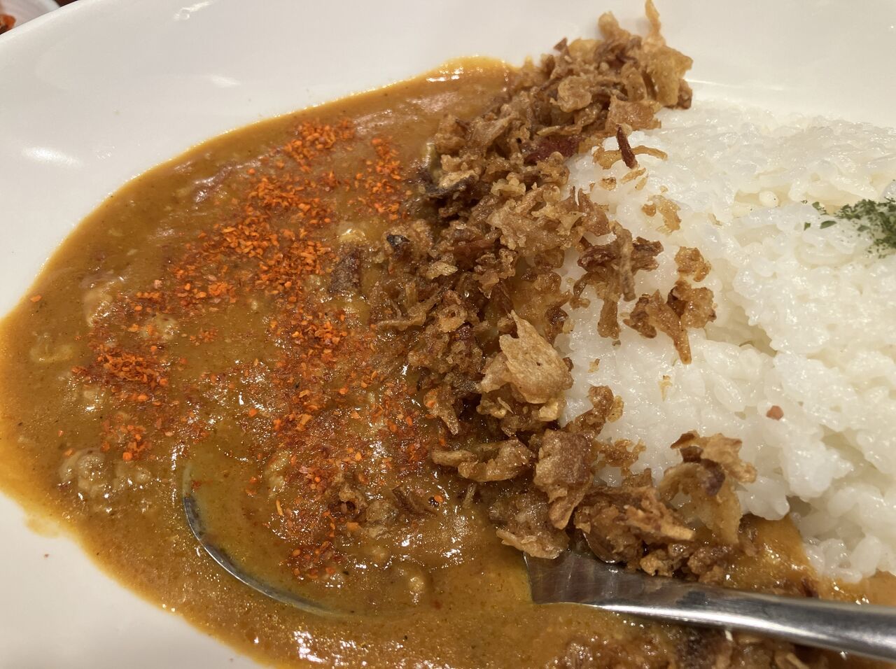 ルーとご飯の境目にはたっぷりのフライドオニオン。