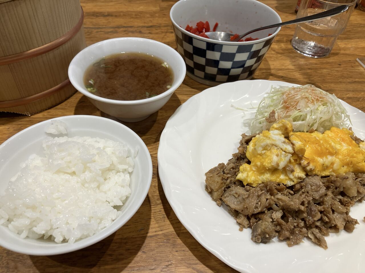 あらかじめ見込みで鉄板で肉を炒めてあるので1分ほどで味噌汁、焼肉が運ばれてくる。