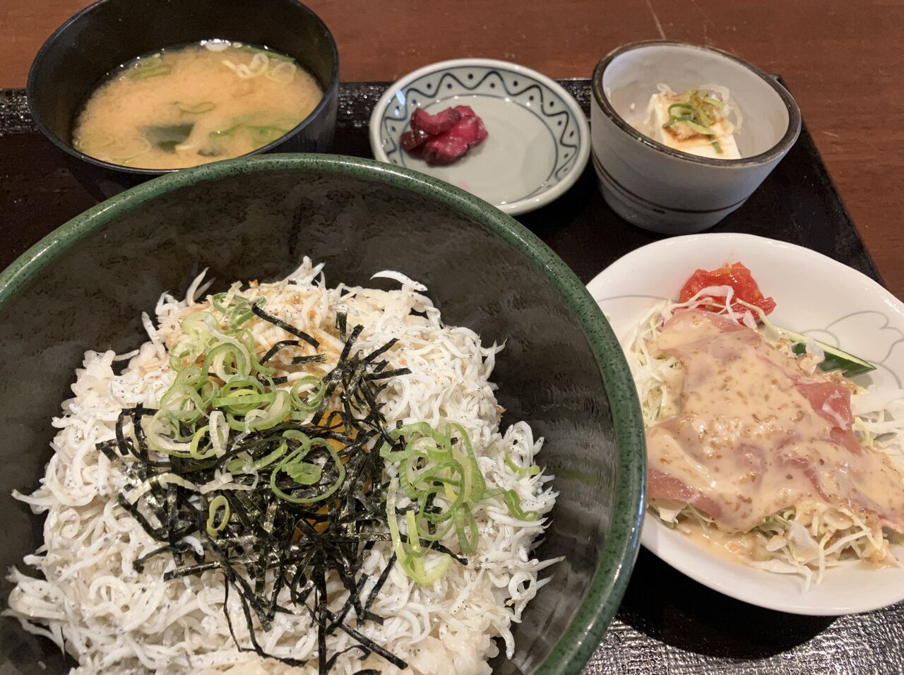 今日のランチは本町の庵菜で「シラス玉子丼」900円です。