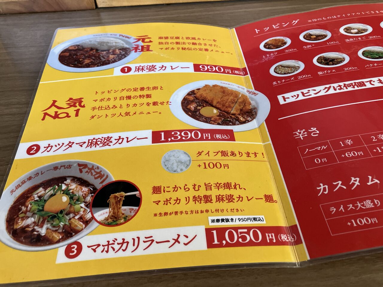 メニューは麻婆カレー、カツタマ麻婆カレー、