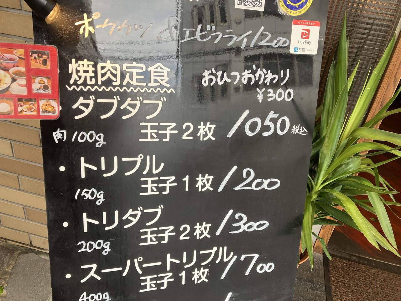 焼肉定食は肉100gのダブダブ〜400gのスーパートリプルまで。