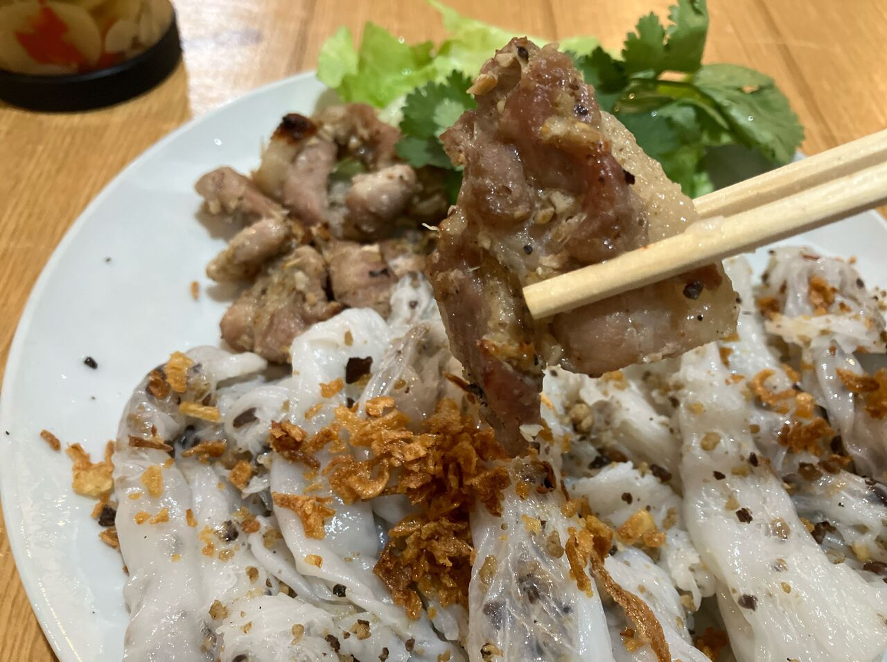 漬け汁にもたっぷりのフライドオニオン。