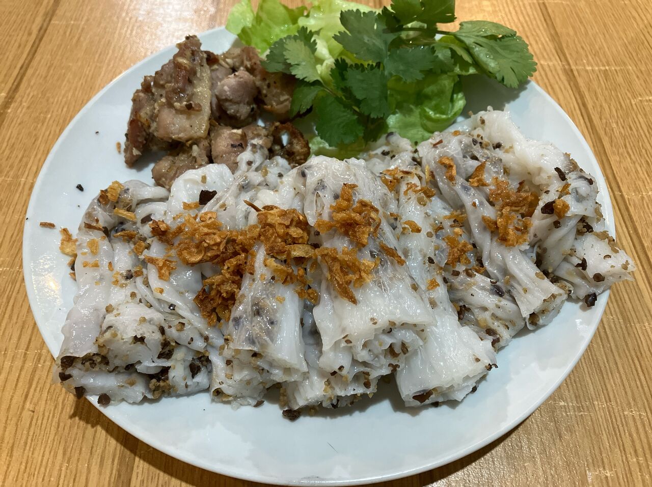 妙に白い春巻きの上にはたっぷりのフライドガーリックが掛けられ