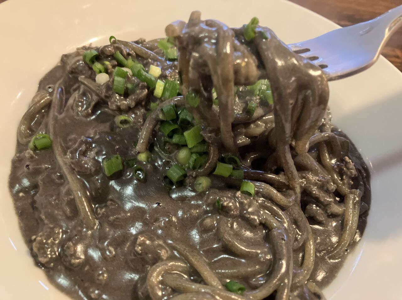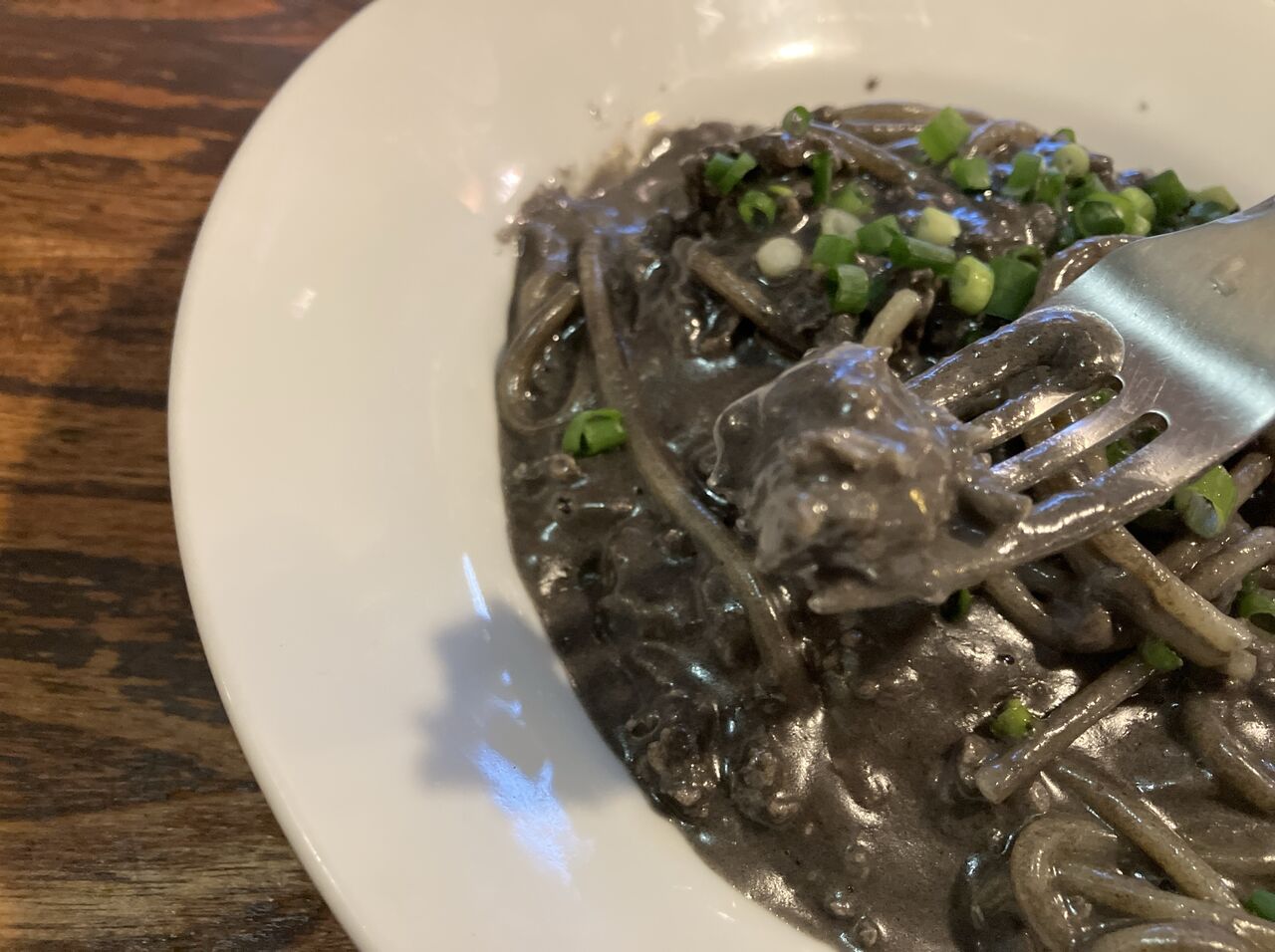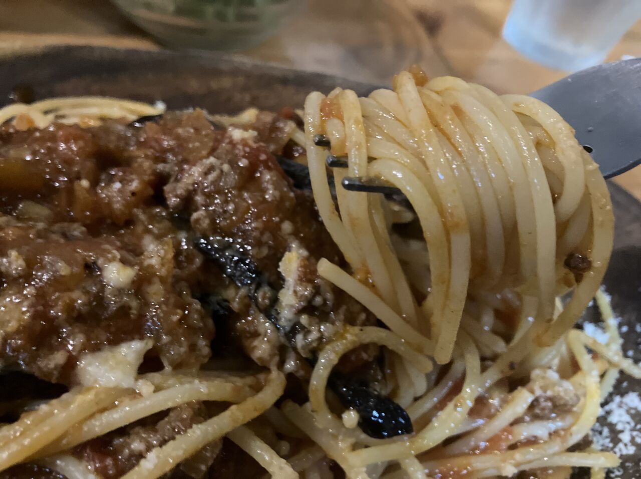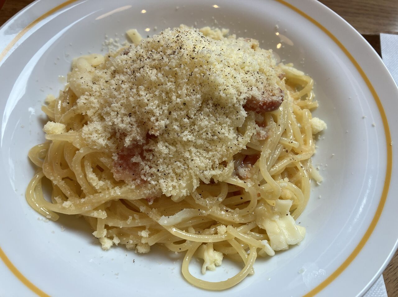 パスタは茹でたてで熱々、火傷注意。