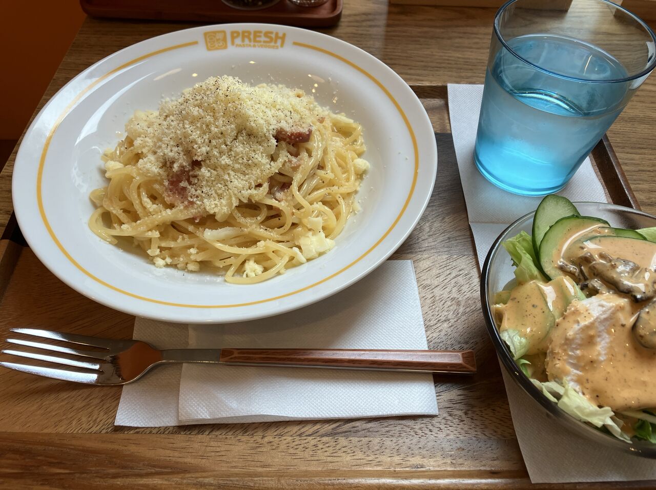 パスタセット(生ハムとメロンのペペロンチーノ)をオーダー。