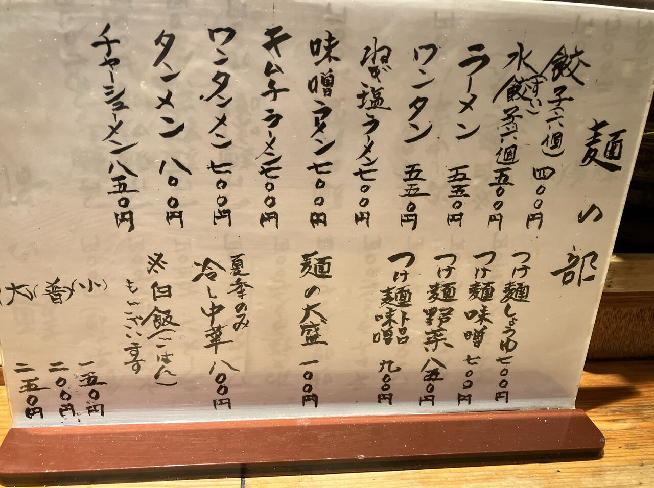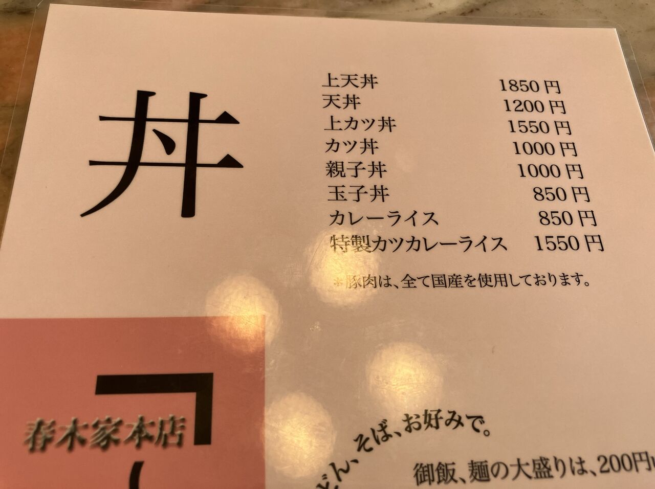 メニューをみると前回よりほぼ全品50円値上げしている。