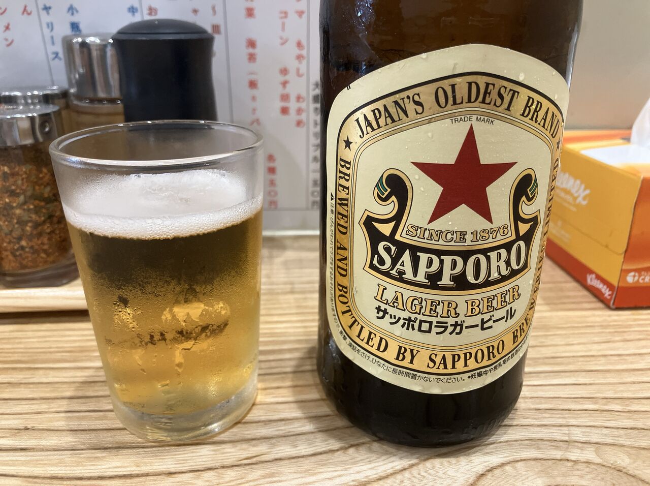 カウンター席に座ると、メニューを見る間も無く赤星をオーダー。