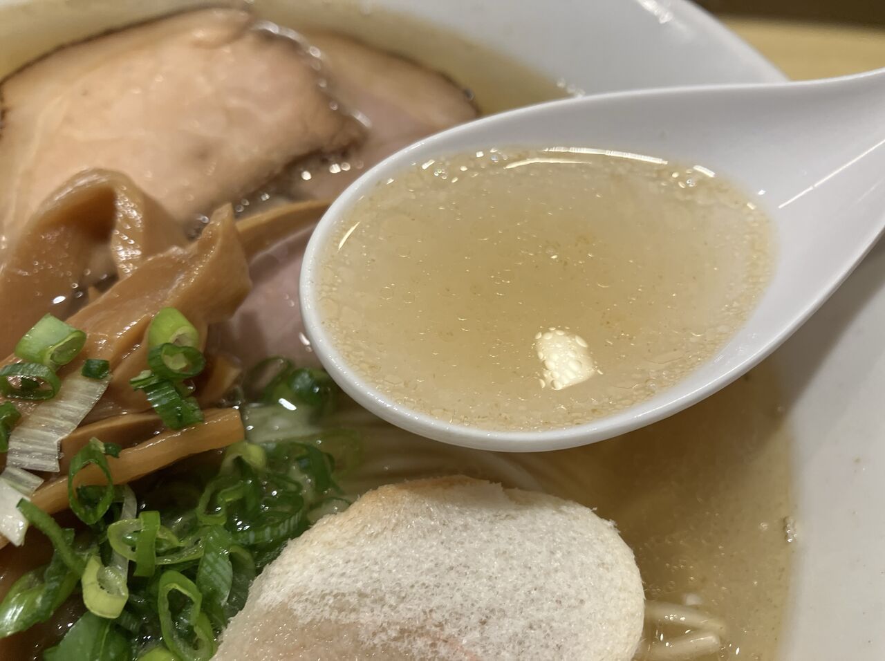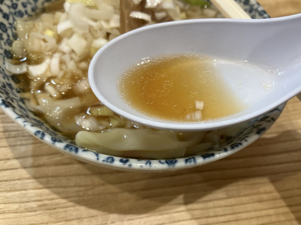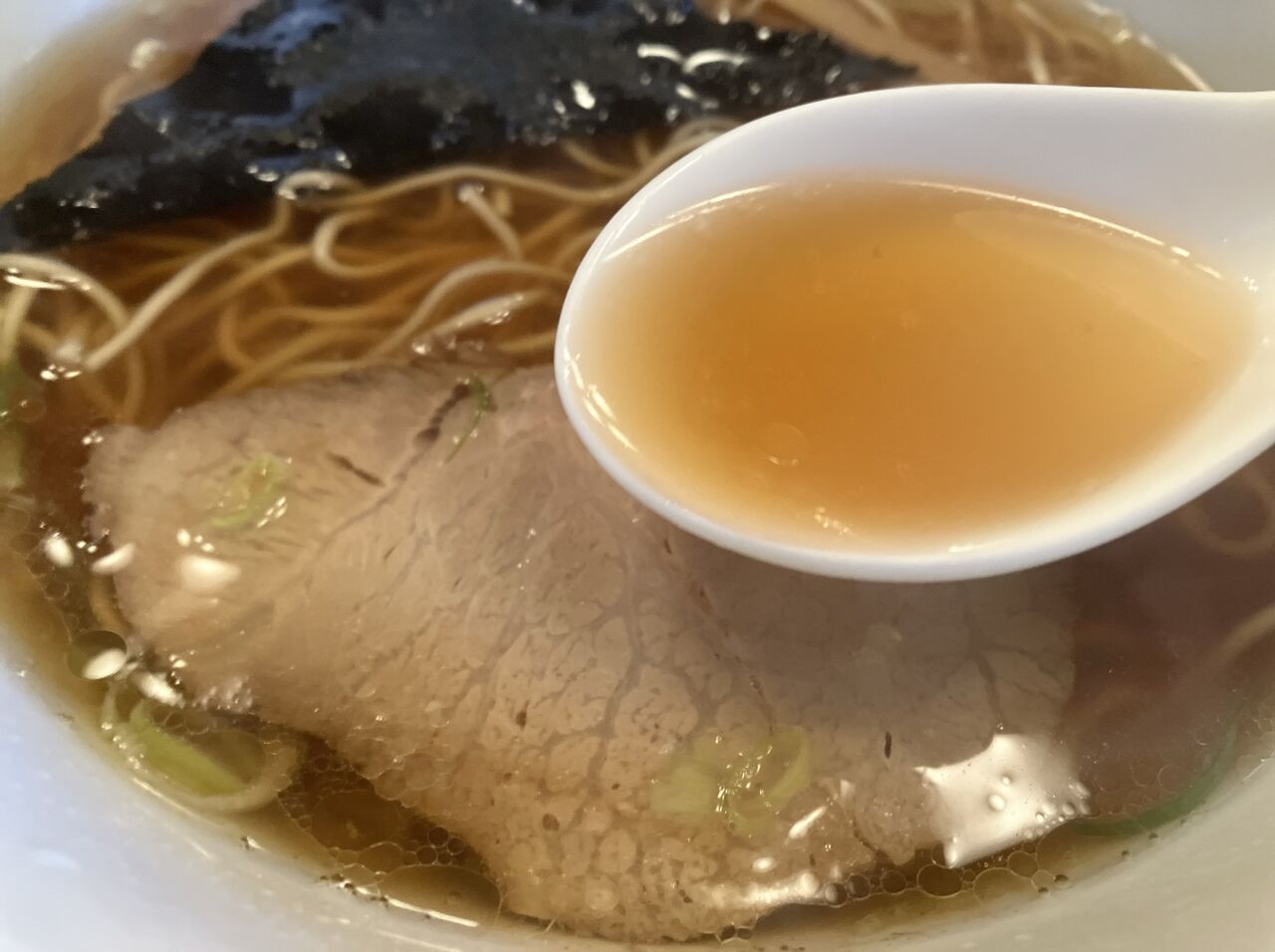 濃口醤油のコクが効いた、ちょっと甘味のあるスープ。