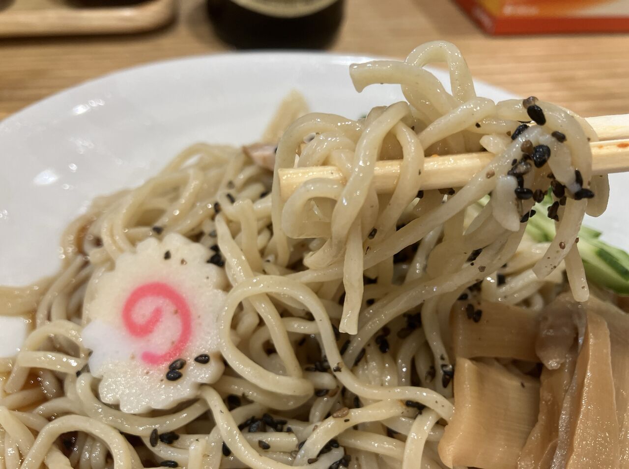 麺は中太麺でキンキンに〆られ、弾力のある歯応えが楽しい。