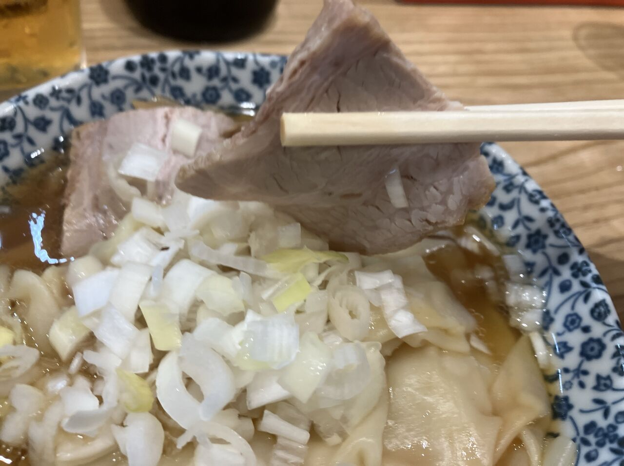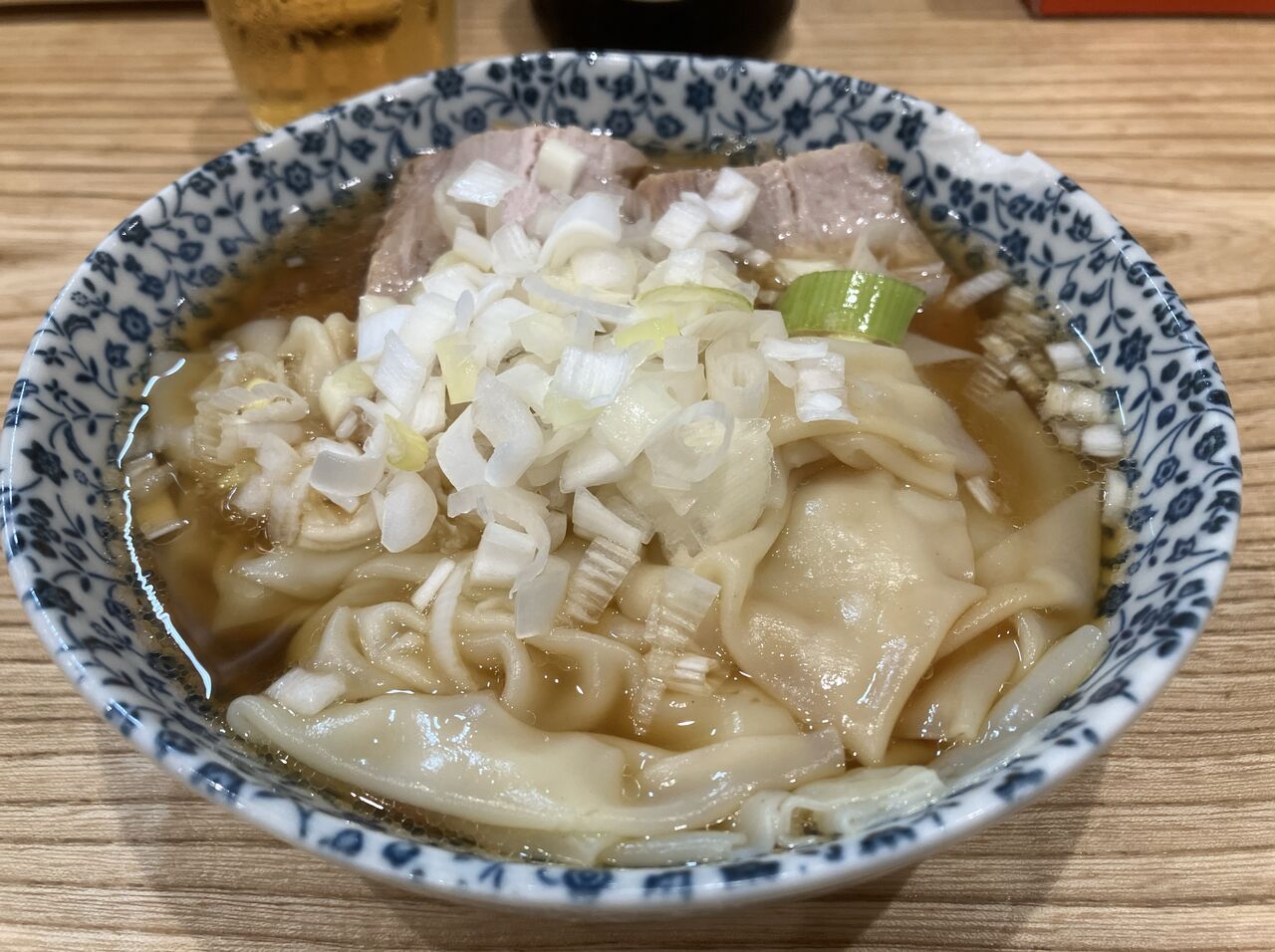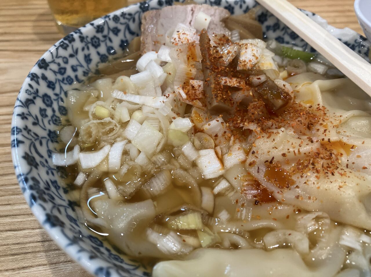 たっぷりのワンタンにチャーシュー、めんま、刻みネギ。