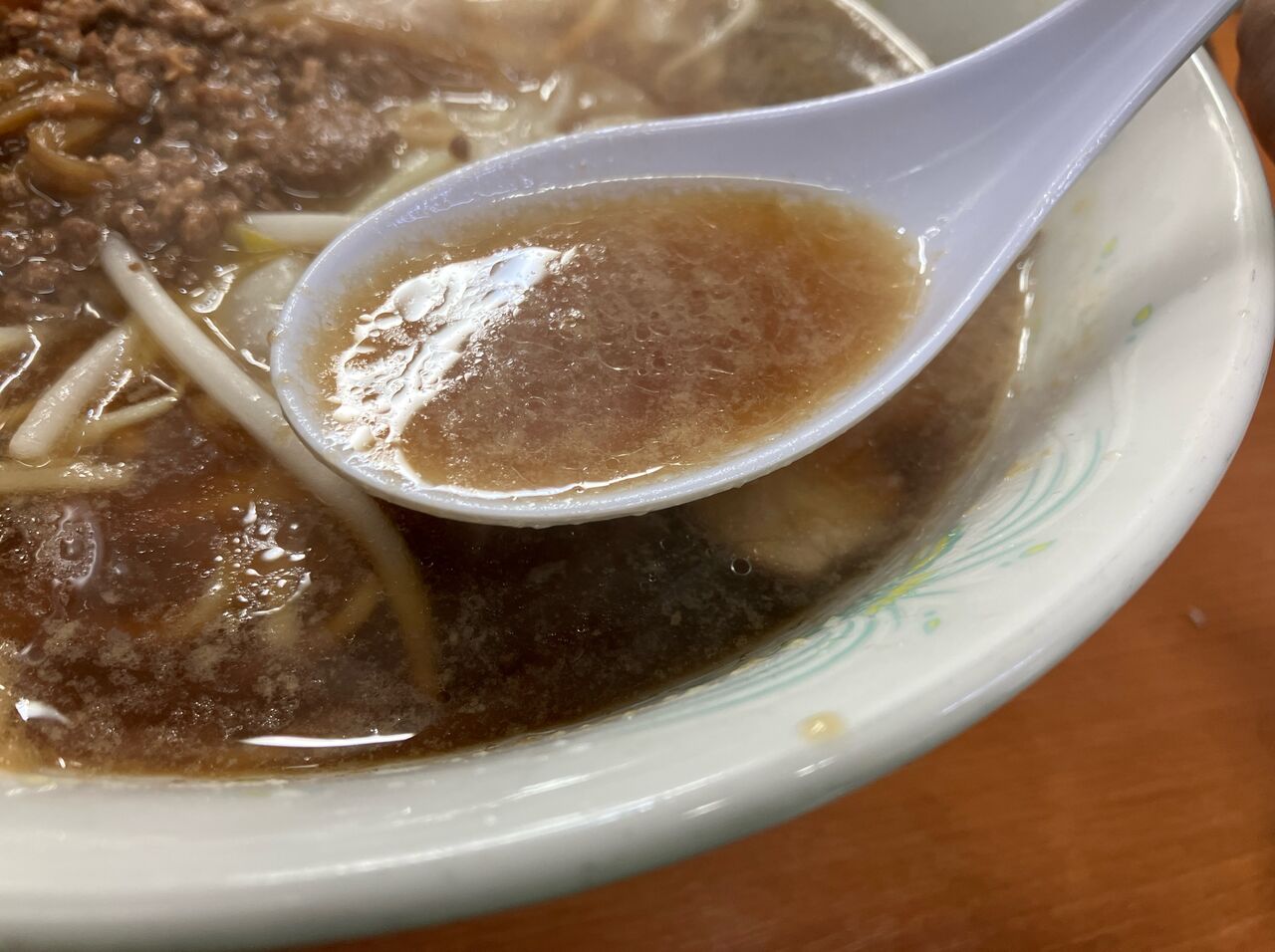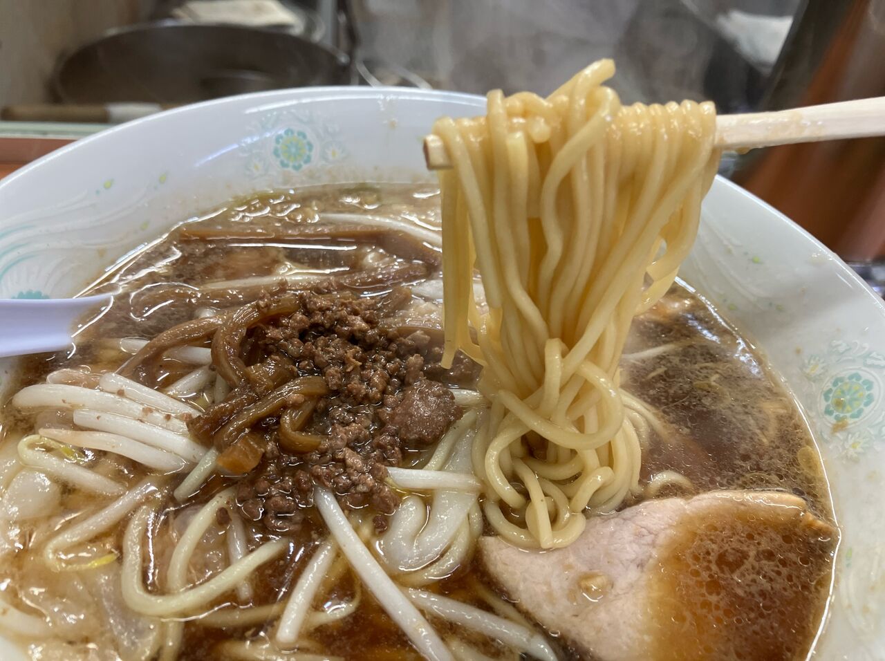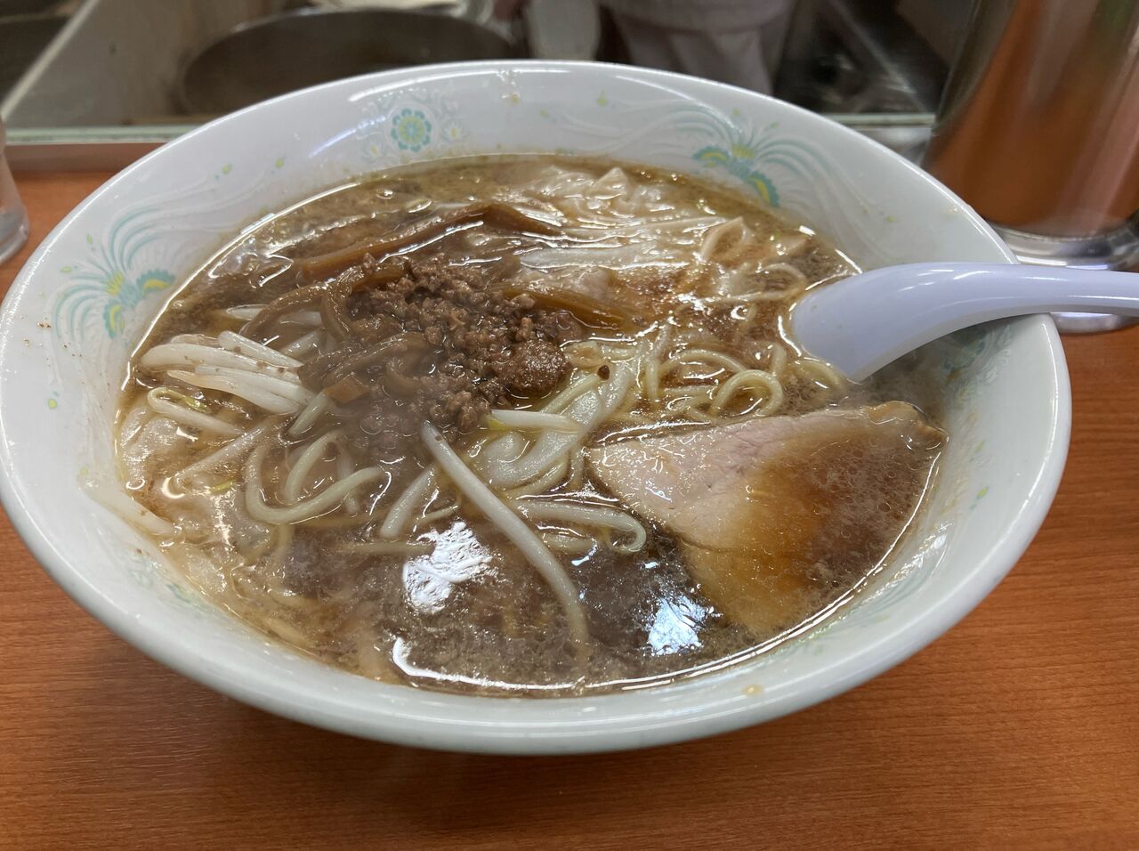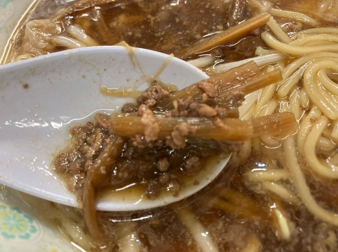 トッピングは味付きの挽肉とメンマ。