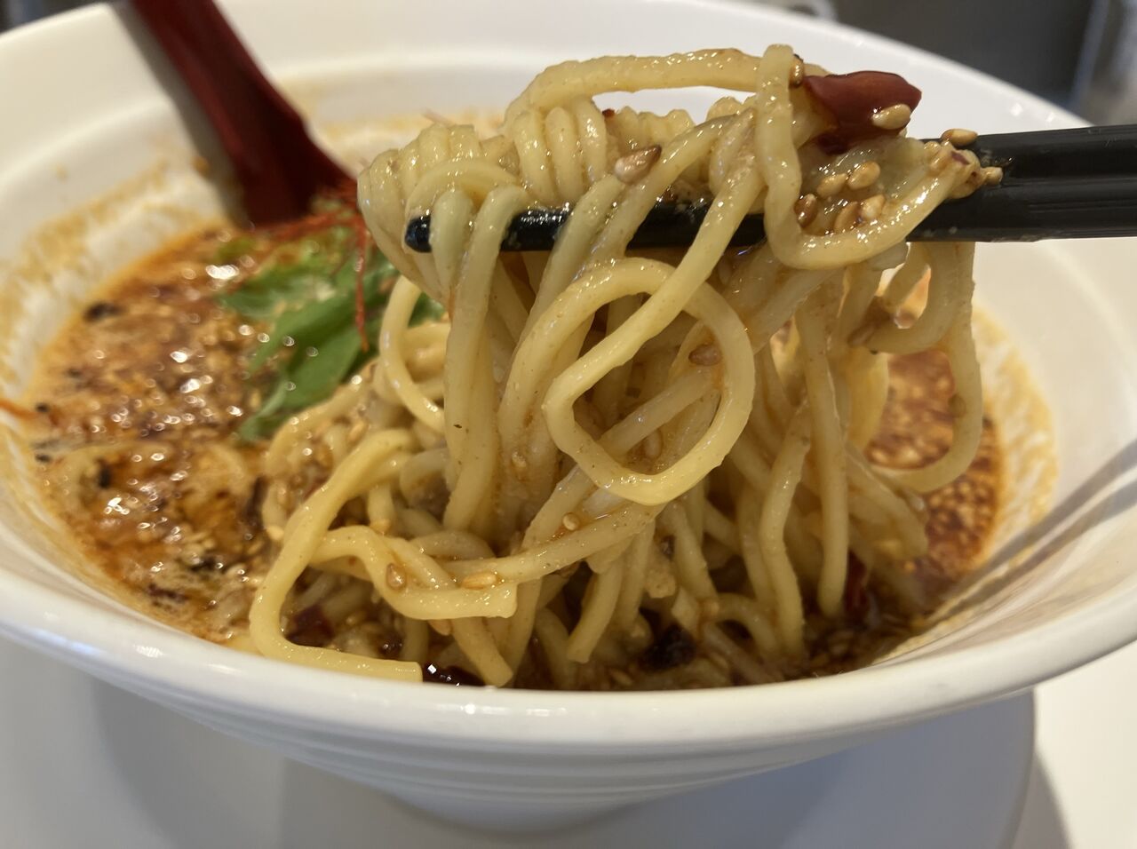 麺は坦々麺にしては細めの中細麺。