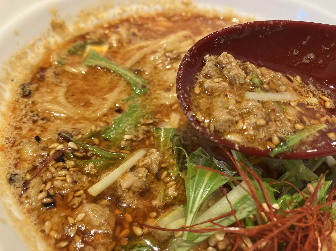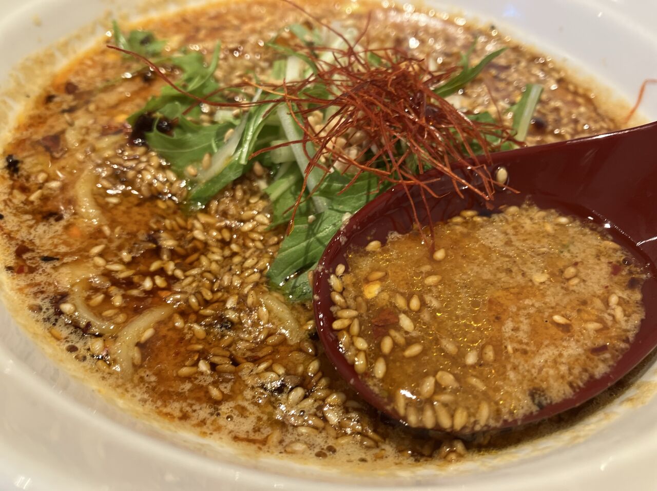 表面にたっぷりのゴマが浮かぶスープはややとろみがつき、しっかりと胡麻味がついている。