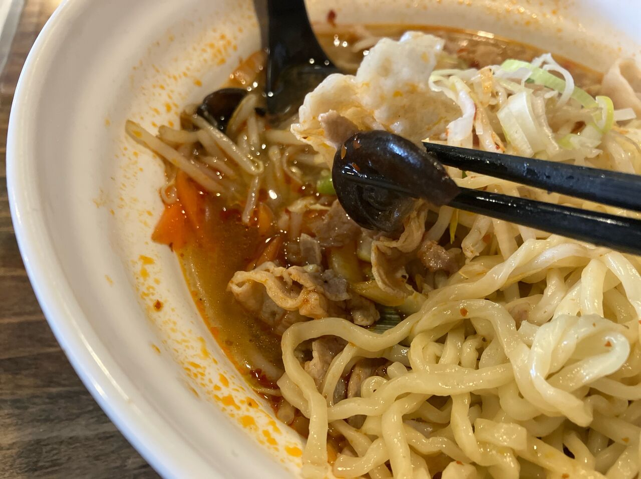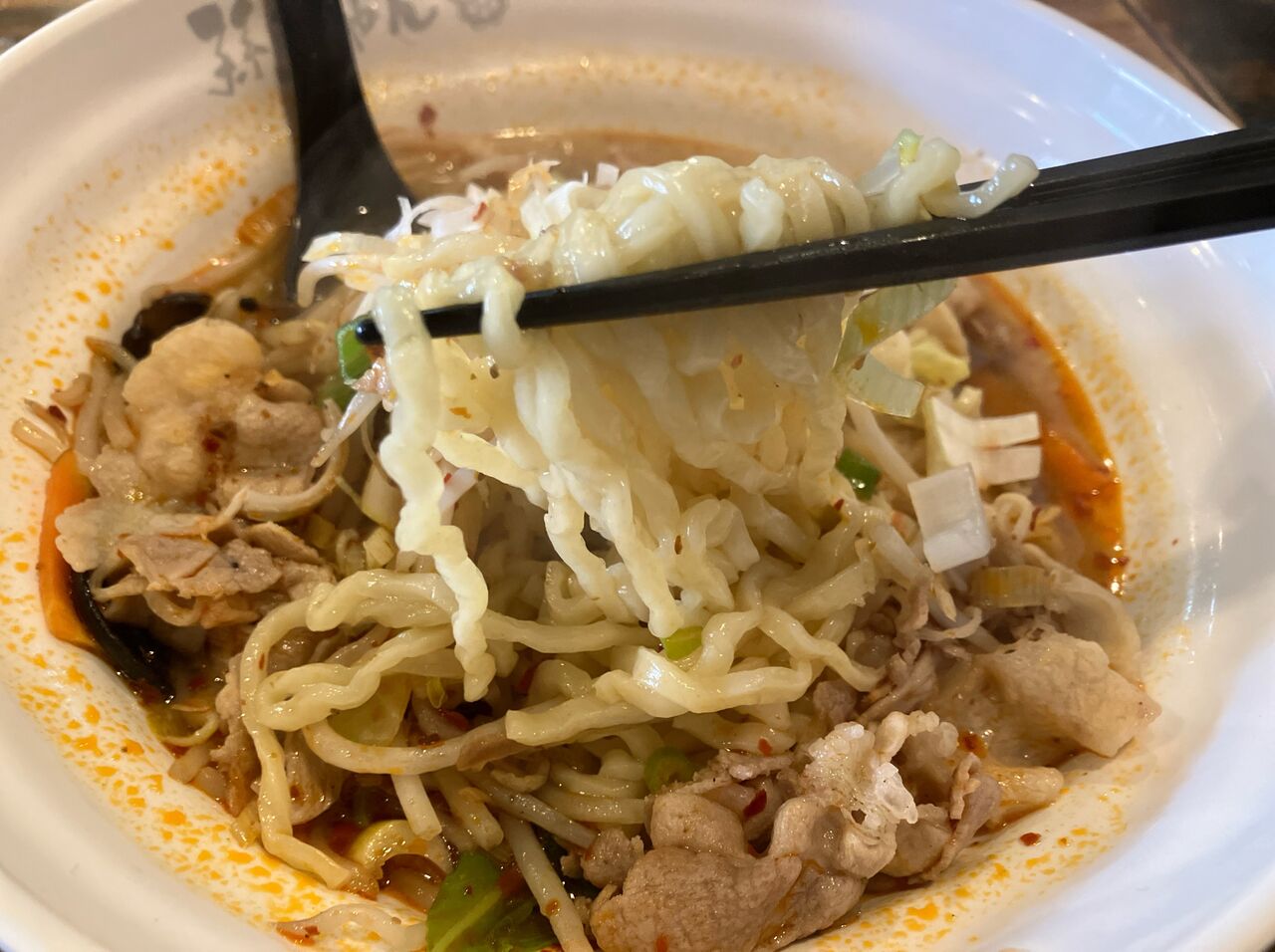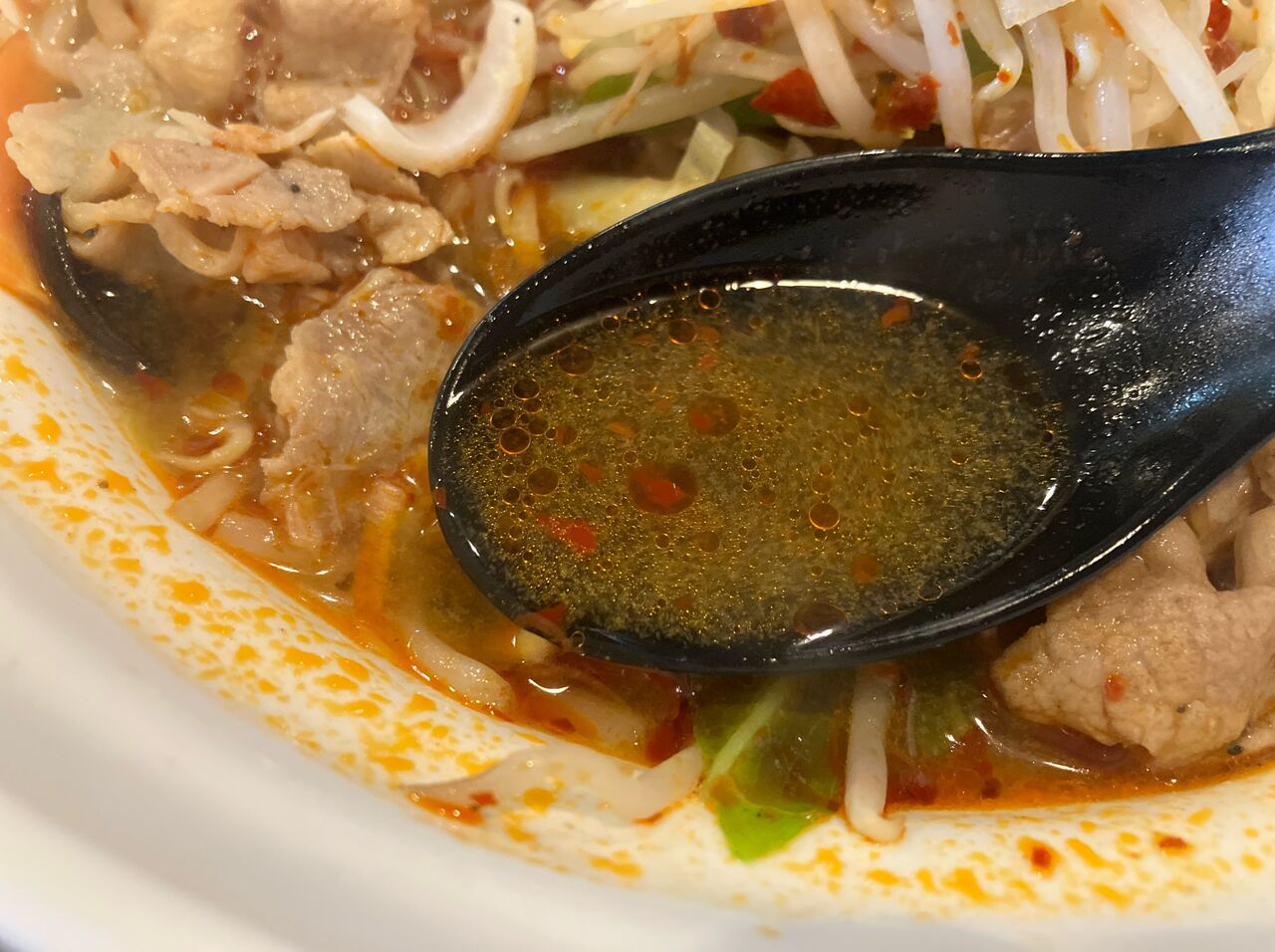 スープの色は本格四川の店以外でたまに見かける辛いスープの色。