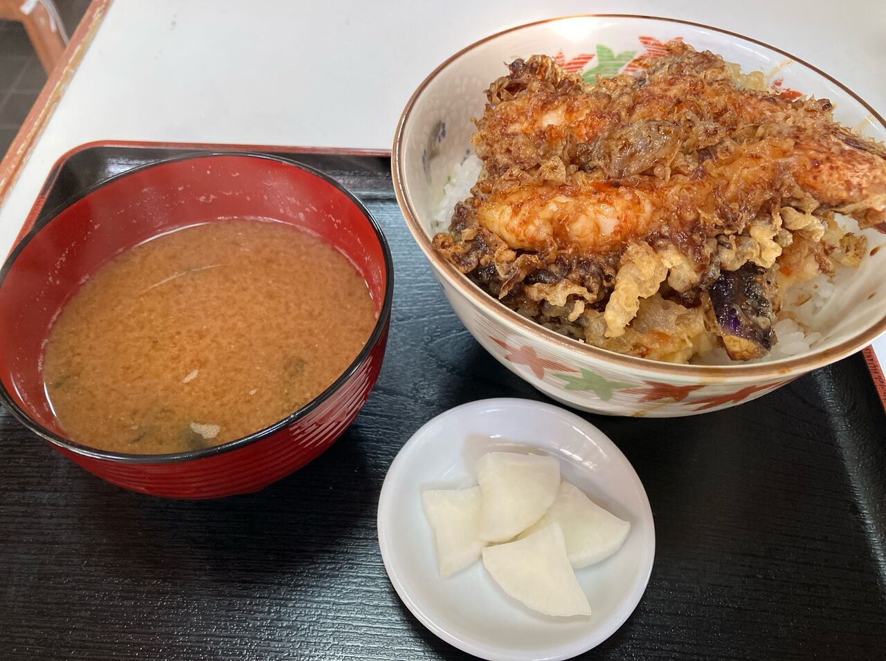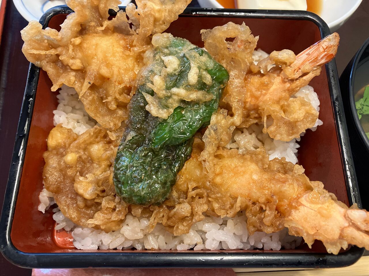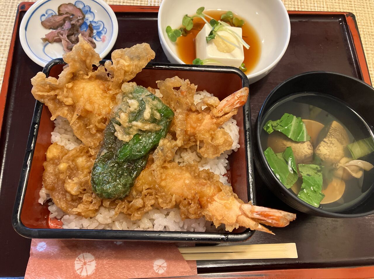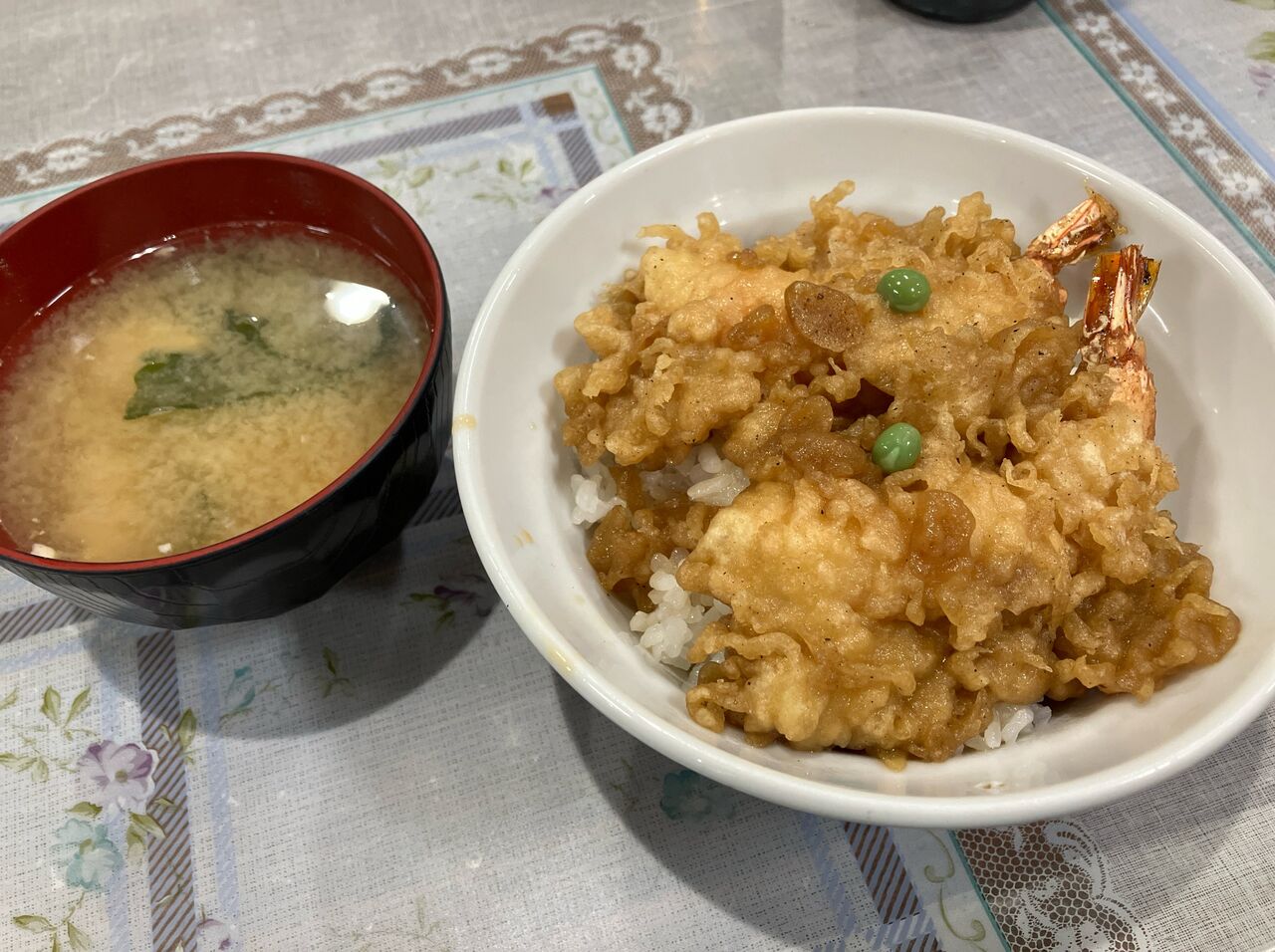 メニューは海老1尾の天丼、天ぷら定食が1,000円、