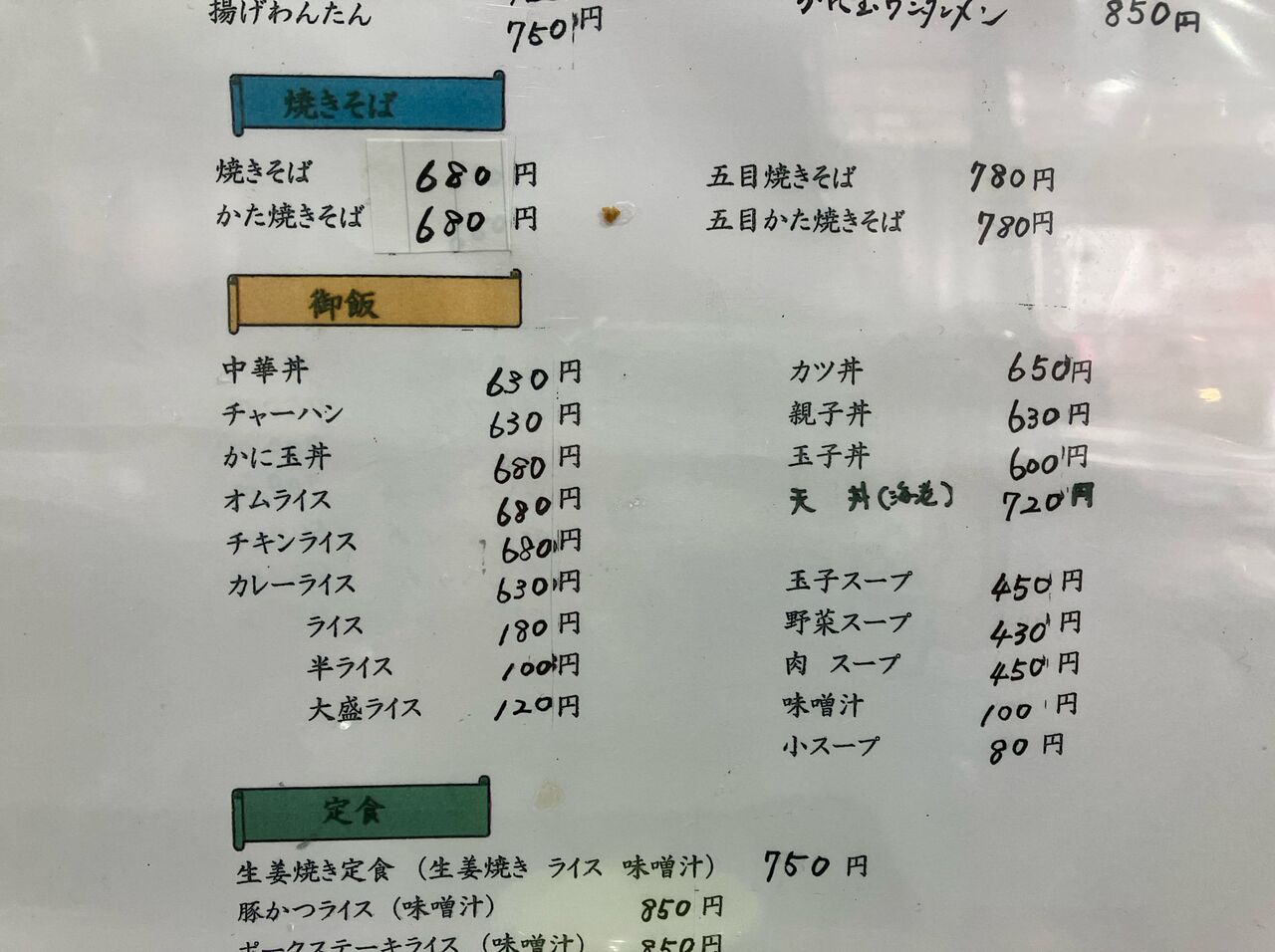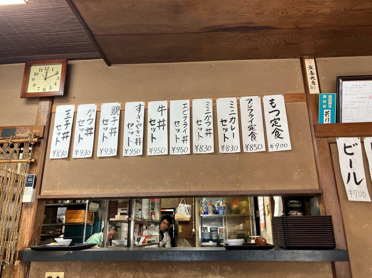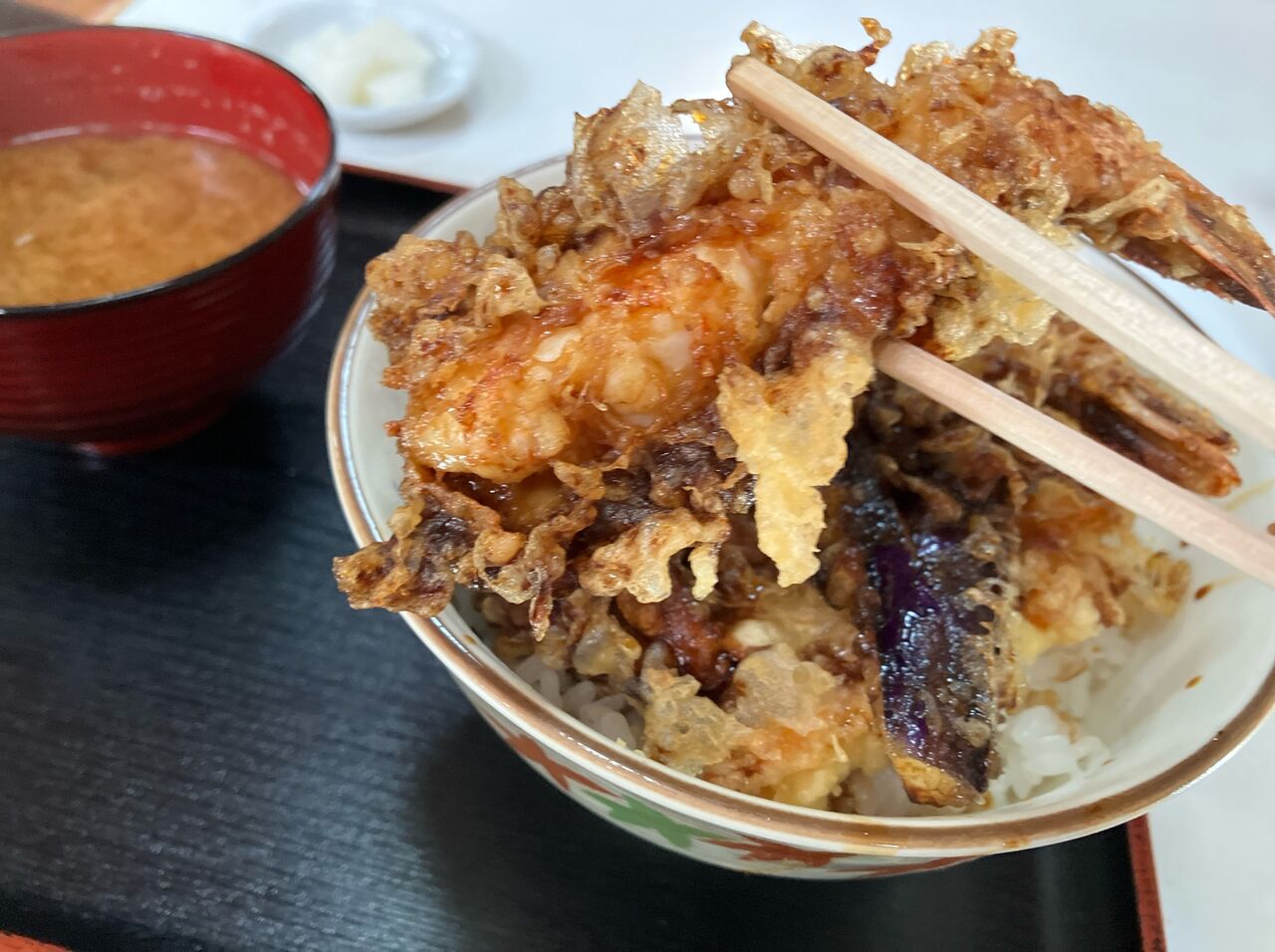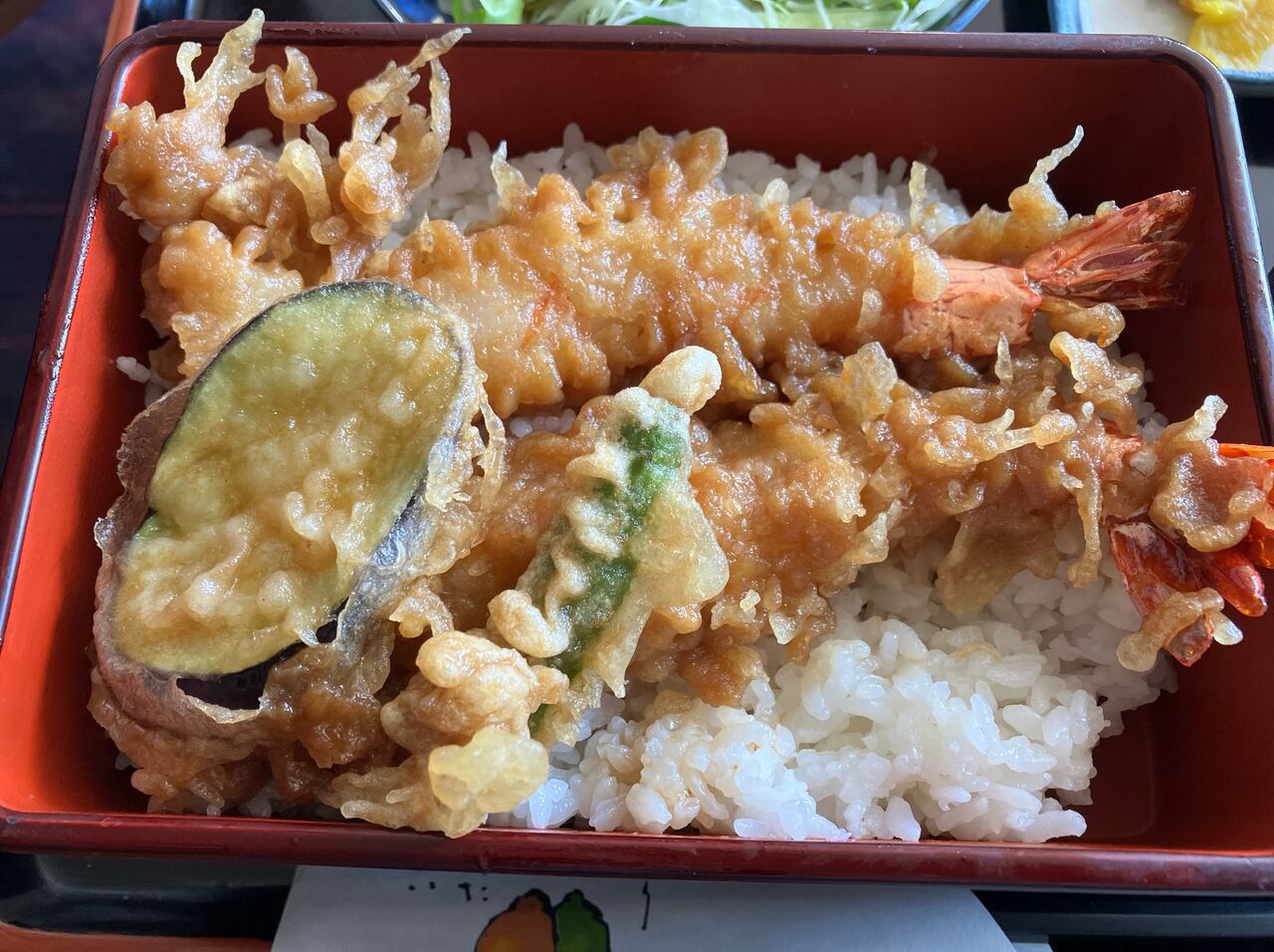 メニューは海老1尾の天丼、天ぷら定食が1,000円、