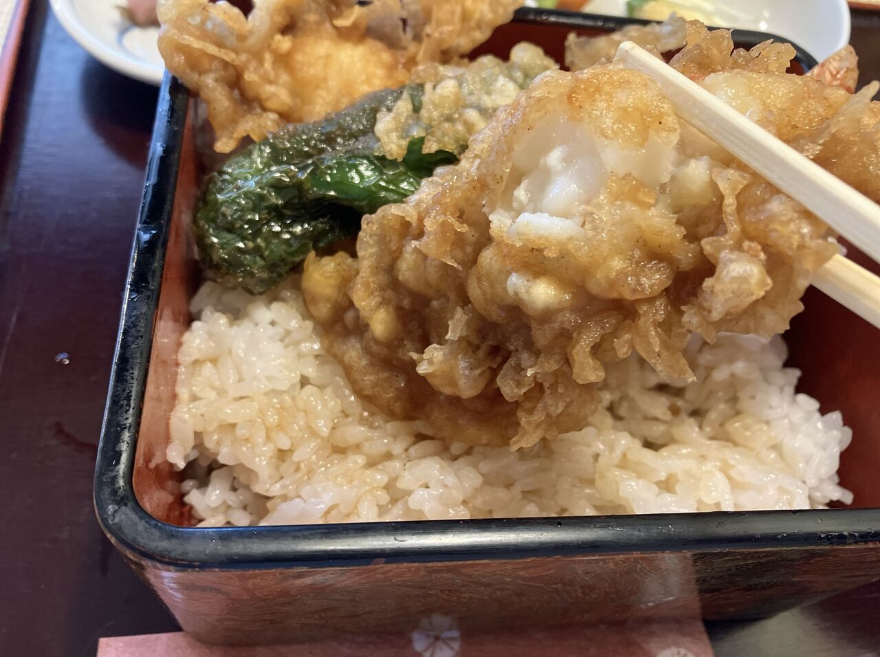 天ぷらは海老2尾、白身魚、いか、かぼちゃ、れんこん。