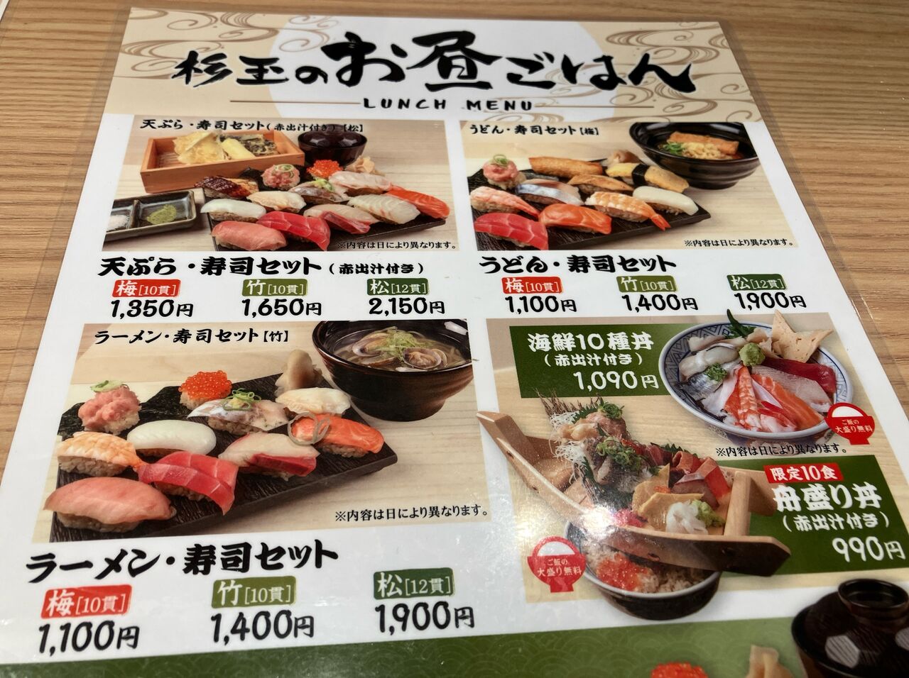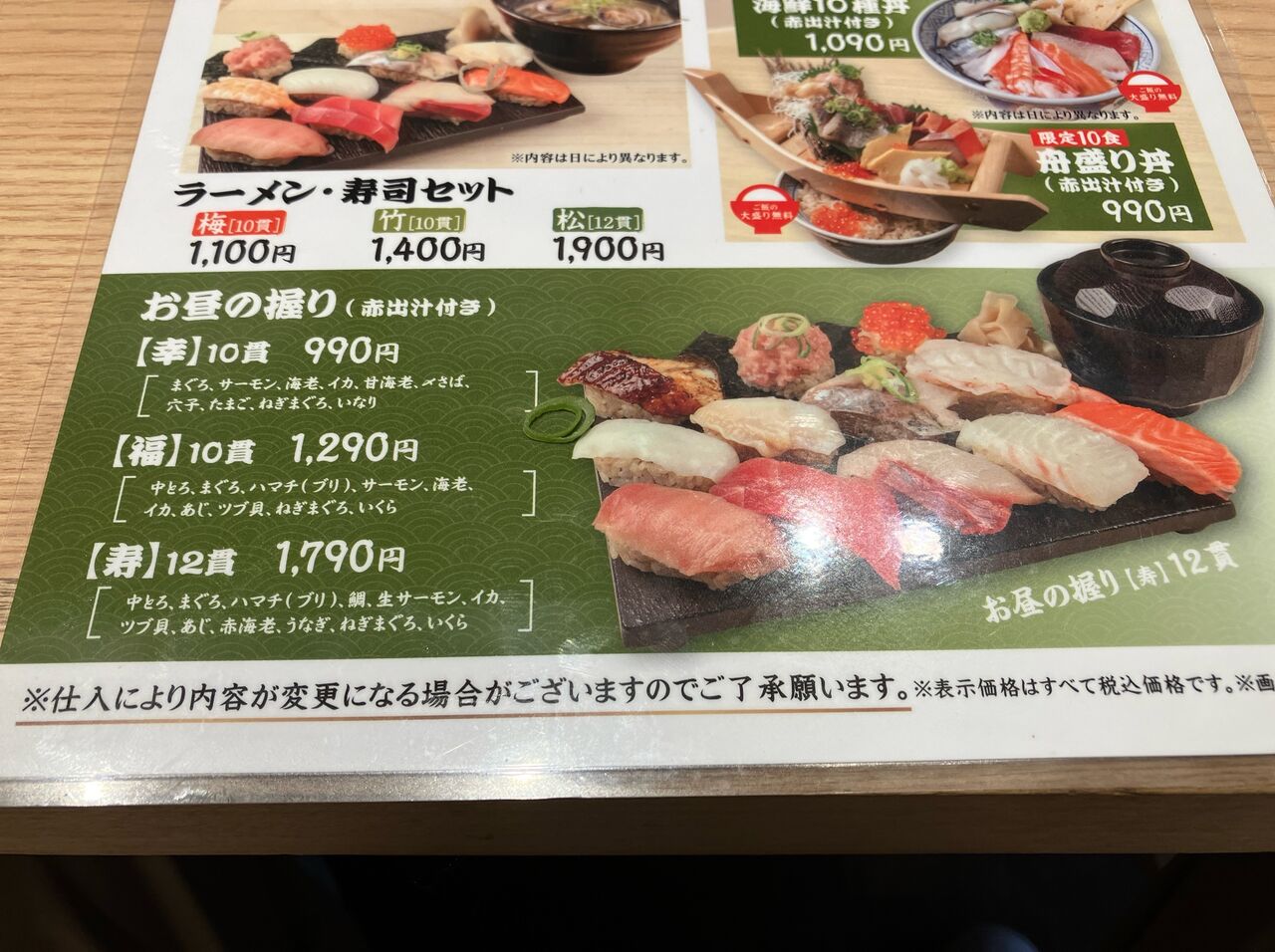ランチメニューは握りが950円から