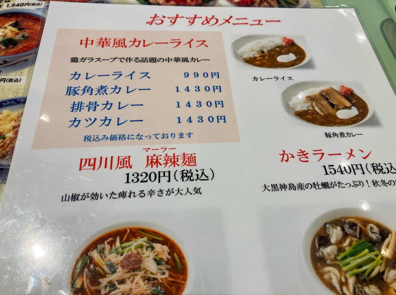 さて何を食べようかとメニューを開いてみると、