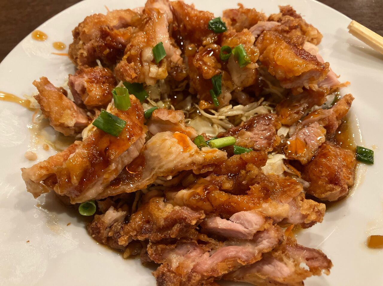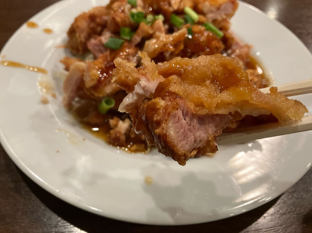 一口大にカットされ食べやすい油淋鶏は衣はサクサク。