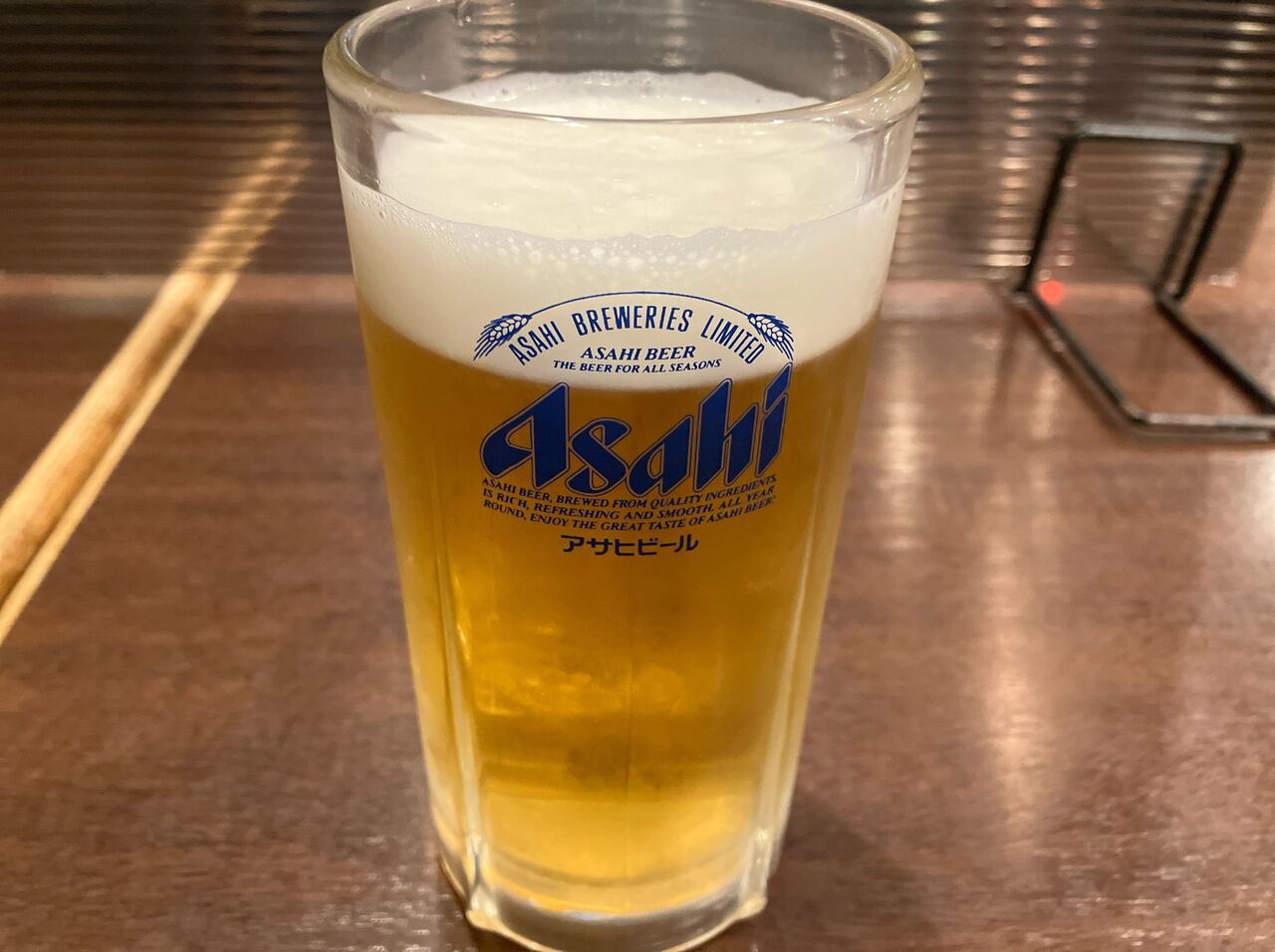 なみなみと中身が注がれているが、グラスビールくらいの細さ。