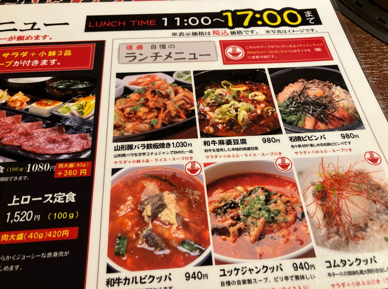 今日のランチは高円寺の焼肉一式 道盛で「焼肉定食」1,080円です。+「肉大盛」320円。